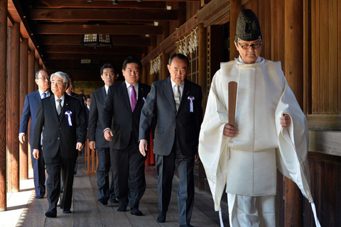 【财新网】(记者 黄蒂)4月22日,日本逾百名国会议员集体参拜了正在举行春季例行大祭的靖国神社。