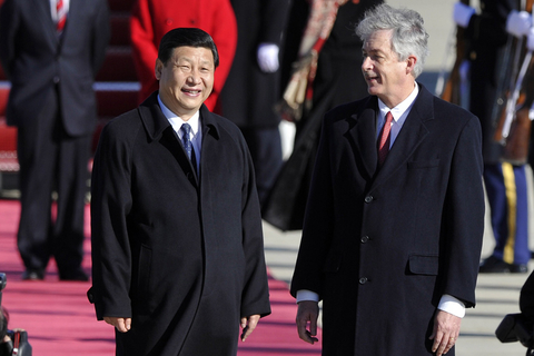 上午11时,习近平与美国副总统拜登(Joe Biden)在白宫罗斯福会客厅进行两国双边会谈。