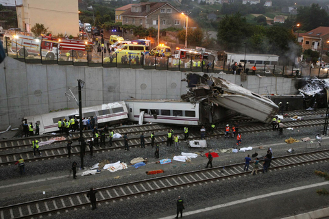 事故发生在加利西亚自治区首府圣地亚哥-德孔波斯特拉附近。脱轨火车是一辆西班牙国有铁路的高速火车,从马德里始发,载有200-300名乘客。■