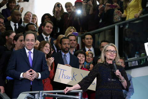 2013年2月1日,希拉里发表完离职演说后准备离开美国国务院。 CHIP SOMODEVILLA/东方IC