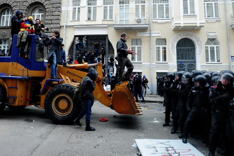 【财新网】(综合媒体报道)12月11日,在乌克兰警方清场基辅独立广场数小时之后,反对派又在原址上搭起了路障,继续进行抗议活动。
