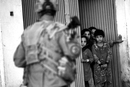 战争,击碎了多少儿童的幻想与憧憬。稚嫩的儿童默默注视着血腥的厮杀,有些人甚至被迫参与其中。这些记忆或许会改变孩子们的一生。硝烟过后,留下的是这些弱小的身影徘徊于迷惘之中。身处和平国家的人们,无法感受战争所带来的创伤和痛苦,也无法体会那些流浪儿童们的眼泪。图为2011年3月27日,苏丹北达尔富尔,一个孩子拿着从地上捡起的子弹。 Albert Gonzalez/REUTERS(编辑:姬晨晨)
