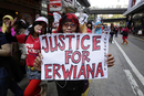 1月26日,香港,在港从事家政行业的印尼人举行集会,抗议同胞遭虐待并要求提供更好的工作环境。据报道,23岁印尼女佣艾维亚纳·苏里斯特亚宁斯去年5月中首度到香港工作,受雇于将军澳一户罗姓家庭,遭到雇主虐待。 Jessica Hromas/Getty Images/CFP