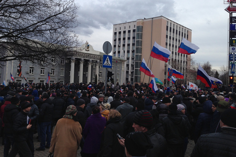 【财新网】(特派乌克兰顿涅茨克记者 倪伟峰)克里米亚公投结束后,美国总统奥巴马当地时间3月16日发声明称,坚定支持乌克兰独立、主权和领土完整,克里米亚公投违反乌克兰宪法,美国不接受公投。并称将让俄罗斯付出更大代价。