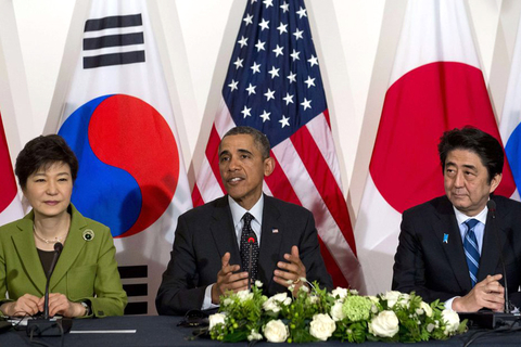 【财新网】(记者 陈立雄)当地时间3月25日晚,在美国总统奥巴马陪同下,日本首相安倍晋三与韩国总统朴槿惠在美国驻荷兰大使馆会晤。这是两国领导人自2012年12月当选以来首次正式对话。
