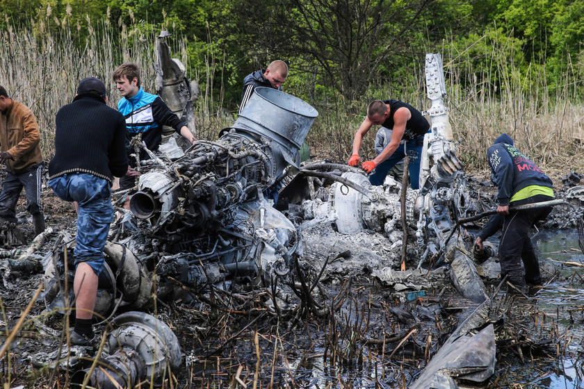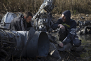 当地时间5月6日,乌克兰Raigorodok,当地居民捡被击落直升机的零部件。该飞机在Raigorodok紧急迫降,随后被乌克兰军方摧毁,目的是不让其落入叛乱部队手中。 东方IC