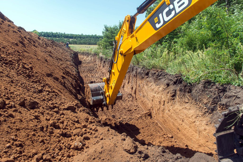 当地时间7月29日,乌克兰哈尔科夫,一辆挖掘机沿着乌克兰与俄罗斯边境挖战壕。修筑战壕是为了防止俄罗斯装甲车辆入侵乌克兰北部地区,战壕长达300千米,其中75千米已竣工。 CFP