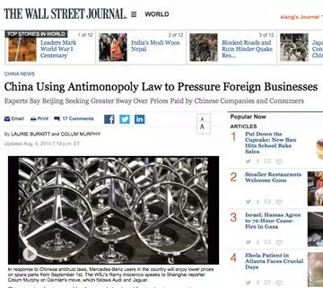 最近,中国政府启动了一系列对外企的反垄断调查,对象包括奥迪、戴姆勒奔驰,还有像微软和高通这样的科技公司。《华尔街日报》采访的专家称,这是因为中国政府意识到自己的国民在购买外商产品时支付的价格高于海外其他市场。