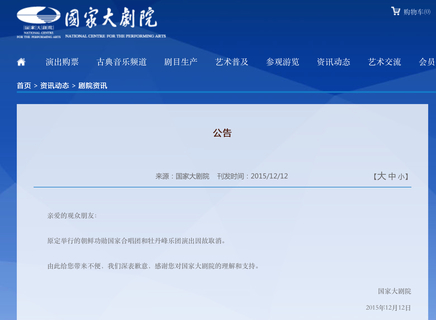 【财新网】(驻华盛顿记者 张远岸)原定于12月12日起进行的朝鲜功勋国家合唱团和牡丹峰乐团的演出,“因工作层面间沟通衔接原因,未能如期进行”。