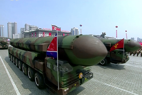 【财新网】(记者 莫业林)4月15日,朝鲜在平壤举行纪念金日成诞辰105周年的阅兵式和群众游行。朝鲜最高领导人金正恩和全体党政军领导人出席了阅兵式,来自世界各地的数百名外宾、各国驻朝使节、海外朝鲜人代表观看了阅兵式。几十名外国记者在现场报道。整个阅兵式和群众游行持续3小时。