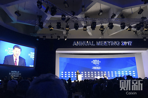 据新华社快讯,国家主席习近平17日上午在瑞士达沃斯出席世界经济论坛2017年年会开幕式并发表主旨演讲。这是中国国家主席首次出席世界经济论坛年会。图自财新记者